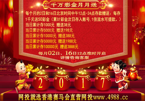 楼主 最新好消息,有在【香港赛马会直营网投】注册用户的网友注意了,【香港赛马会直营网投】每个月02日与16日,存款累计1000元就送50元彩金.